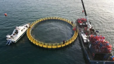 يواصل العديد من المزارعين توسيع استثماراتهم في المزارع البحرية، لجدواها الاقتصادية العالية مقارنة برأسمالها. وتظهر الصورة عاملين خلال مراقبتهم عمل…