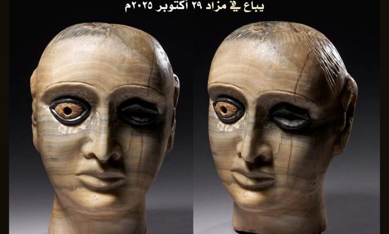 أعلنت دار بلاكاس الفرنسية تنظيم مزاد علني في 29 أكتوبر 2025 لبيع رأس تمثال جنائزي يمني من المرمر، في قطعة أثرية نادرة تُعد من أبرز نماذج فن النحت في الجنوب العربي القديم.