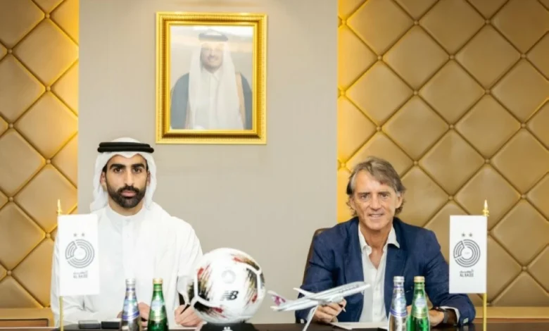 The Qatari club Al-Sadd announced today (Thursday) its official contract with Italian coach Roberto Mancini to lead the first football team, succeeding the Spaniard Felix Sanchez.
