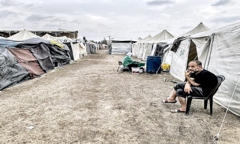 خيام النازحين وقد تكدست لتفادي خروقات وقف النار