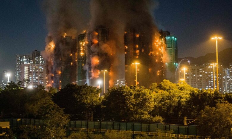 حريق هائل يلتهم 7 أبراج سكنية في هونج كونج ويتسبب في وفاة العشرات
