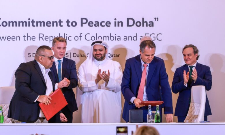 قطر تعلن عن توقيع حكومة كولومبيا وجماعة (EGC) المعلنة ذاتيا على اتفاق ترسيخ الالتزام بالسلام بعد جولتين من الوساطة بالدوحة