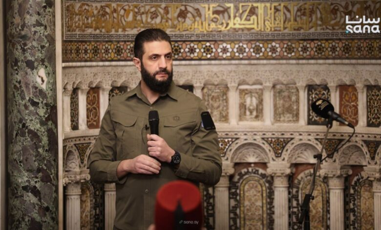 جاء ذلك في كلمة للشرع ألقاها في المسجد الأموي بدمشق في الذكرى الأولى للتحرير.