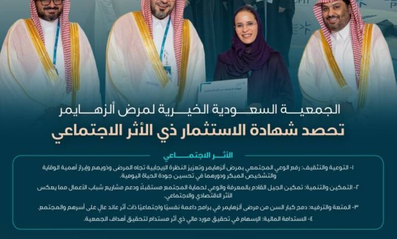 خيرية مرض ألزهايمر تحصد شهادة الأثر الاجتماعي