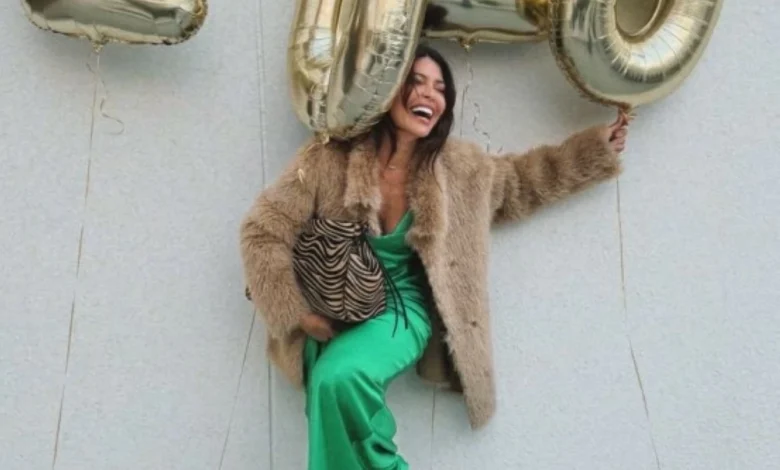 She paired the dress with a brown fur jacket, adding warmth and luxury to the look, while creating an attractive visual contrast with the softness of the satin. She added a striking touch with a zebra-print bag, breaking the classic vibe and giving the outfit a bold modern character that reflects her playful personality in accessory choices.
