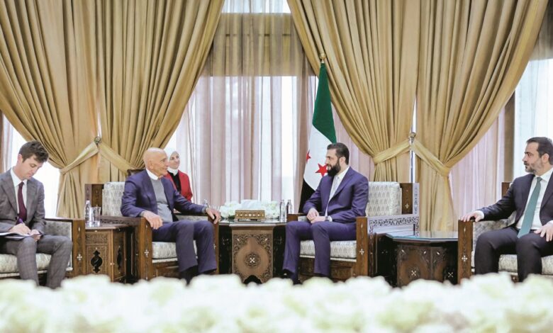 وكان الشرع استقبل المبعوث الأمريكي إلى سوريا توم براك. وقال الشرع في تصريحات للصحفيين عقب اللقاء إن «كل الملفات العالقة مع قسد سيتم حلها»، مشيرا إلى أن مؤسسات الدولة ستدخل إلى المحافظات الشرقية والشمالية الشرقية الثلاث. وصرح الرئيس السوري بأنه كان على موعد مع قائد قوات قسد مظلوم عبدي، أمس، لكنه «تأخر بسبب سوء الأحوال الجوية». وذكرت وكالة الأنباء السورية الرسمية (سانا) أن الرئيس الشرع أكد خلال اجتماع بالمبعوث الأمريكي على «وحدة سوريا وسيادتها على كامل أراضيها، وأهمية الحوار في المرحلة الراهنة، وبناء سوريا بمشاركة جميع السوريين، إلى جانب مواصلة تنسيق الجهود في مكافحة الإرهاب».