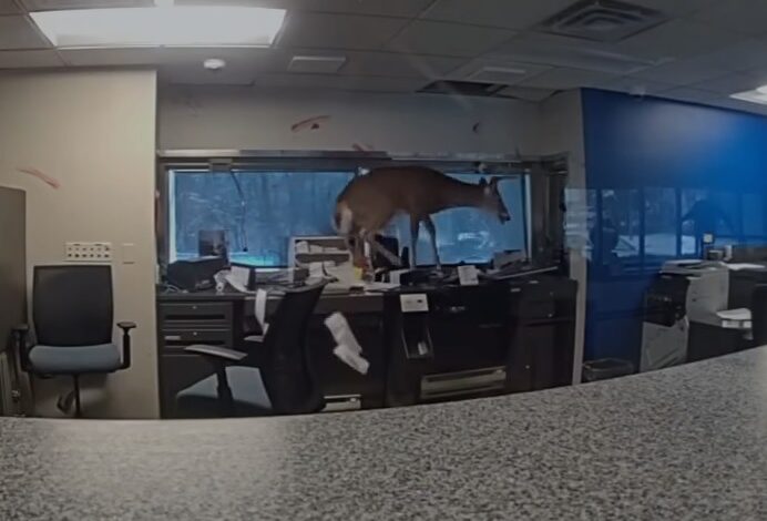 اقتحم غزال نافذة أحد البنوك في نيويورك، محطّمًا الزجاج ومطلقًا إنذار السرقة، ما تسبب بحالة من الإرباك داخل المكان، قبل أن يفرّ دون تسجيل أي إصابات، وفق ما أفادت به الشرطة.