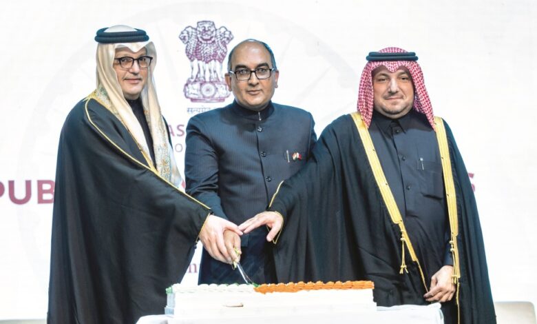 احتفلت سفارة الهند في الدوحة، أمس، بيوم الجمهورية الهندية السابع والسبعين في قطر، وذلك بمشاركة عدد من المسؤولين بالدولة ورؤساء البعثات الدبلوماسية ورجال الأعمال وأفراد الجالية الهندية، حيث حضر سعادة السيد محمد بن علي المناعي، وزير الاتصالات وتكنولوجيا المعلومات، وسعادة السفير إبراهيم يوسف عبد الله فخرو، مدير ادارة المراسم.