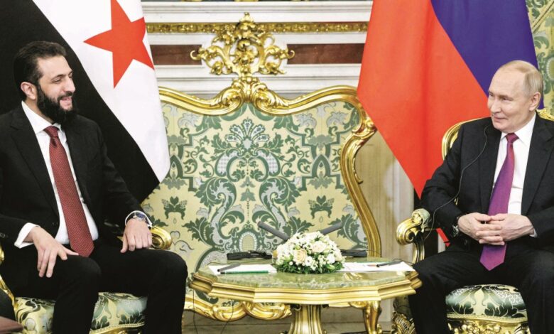 أكد الرئيس الروسي فلاديمير بوتين امس دعم جهود الرئيس السوري الانتقالي أحمد الشرع في استعادة وحدة أراضي سوريا، حيث يسعى الكرملين الى ضمان مستقبل قواعده العسكرية الحيوية لعملياته في الشرق الأوسط.