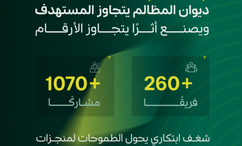 أعلن ديوان المظالم عن انتهاء مرحلة فرز الفِرق المتقدمة في هاكاثون ذكاء القضاء والتي بلغت أكثر من 260 فريقًا ابتكاريًا من مختلف التخصصات والجهات المشاركة، ضمّت أكثر من 1000 متنافس ابتكاري، تقدموا بأفكار ومقترحات ضمن مسارات الهاكاثون المعلنة مسبقًا.