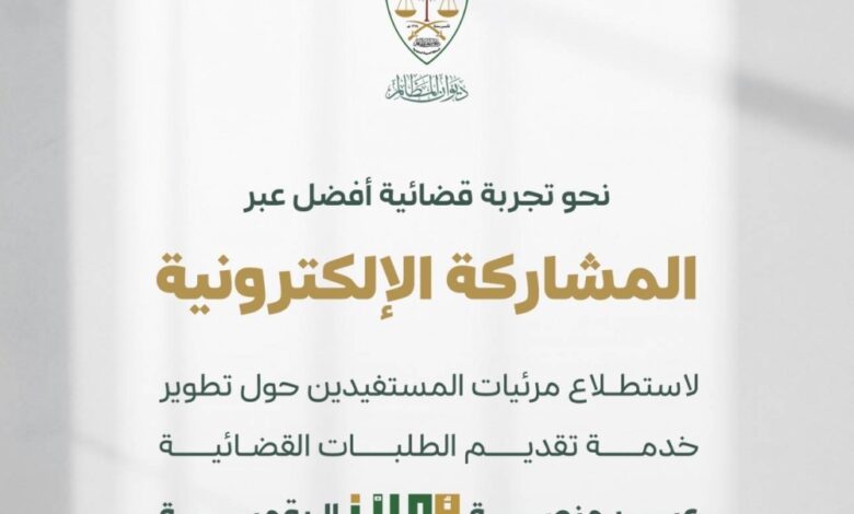 وأكد ديوان المظالم أن تضمين المستفيدين في تقييم الخدمات يُعد أحد الممكنات الرئيسة لتحسين تجربة التقاضي الرقمي وتعزيز كفاءة المنصات القضائية، بما يحقق الأهداف التطويرية المنشودة ويرتقي بجودة الأداء، داعيًا المستفيدين إلى المشاركة بآرائهم عبر الاستطلاع للإسهام في تطوير منظومة الخدمات القضائية الرقمية.