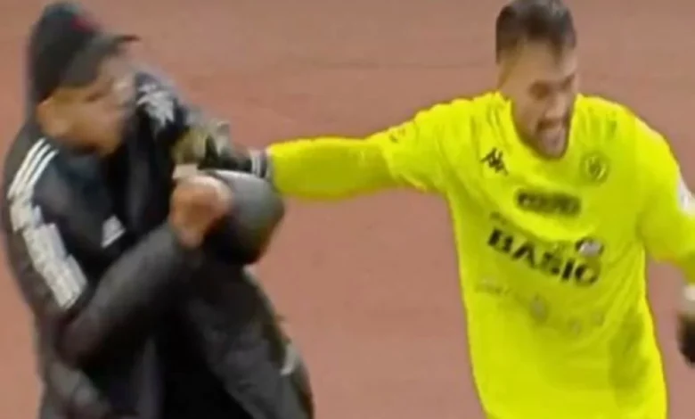 The goalkeeper of Al-Khulood Club, Juan Pablo Cozzani, pushed a ball boy during the match against Al-Najma in the league yesterday, in a game that ended with Al-Khulood losing 1-2.