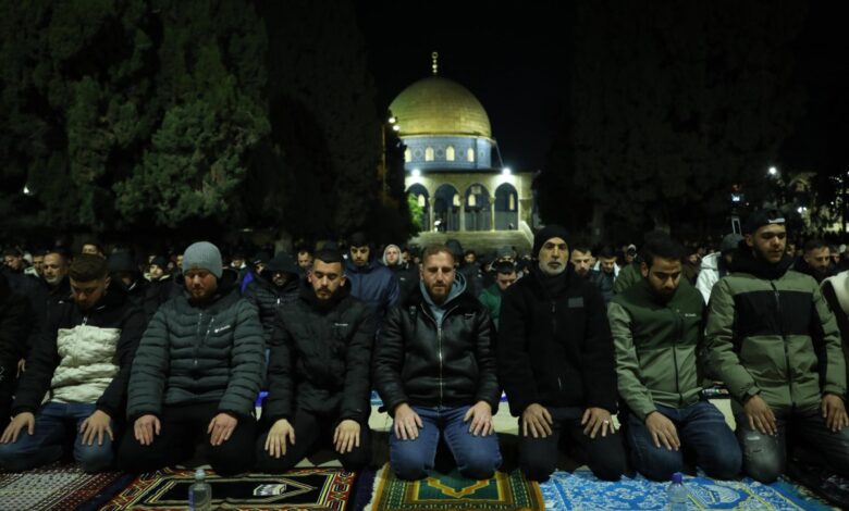 عشرات الآلاف يؤدون صلاتي العشاء والتراويح في المسجد الأقصى المبارك