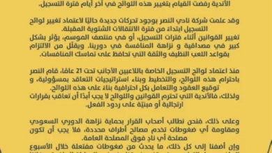 في أقل من 24 ساعة على صدوره مساء الخميس 6 نوفمبر 2025، تجاوز بيان نادي النصر حاجز 11,700,000 مشاهدة عبر…