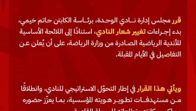 اتخذ مجلس إدارة نادي الوحدة برئاسة حاتم خيمي قرارا تاريخيا بتغيير الشعار الخاص بالنادي، حيث أعلن بدء إجراءات تغيير شعار…